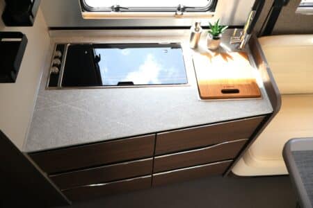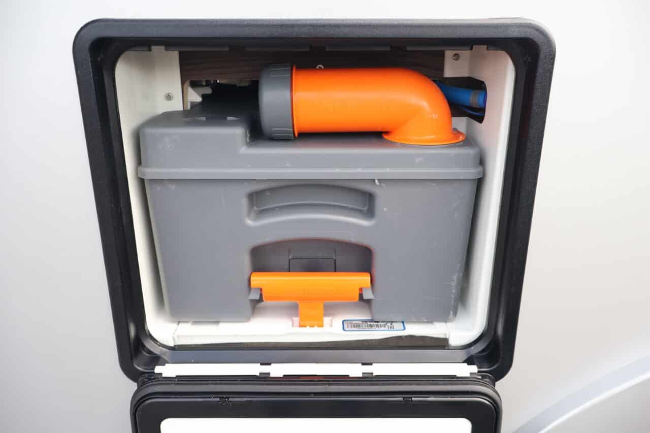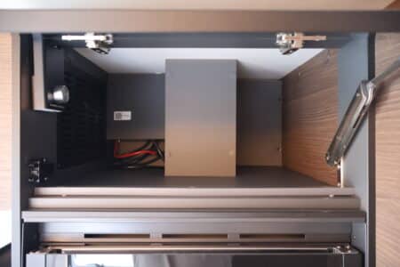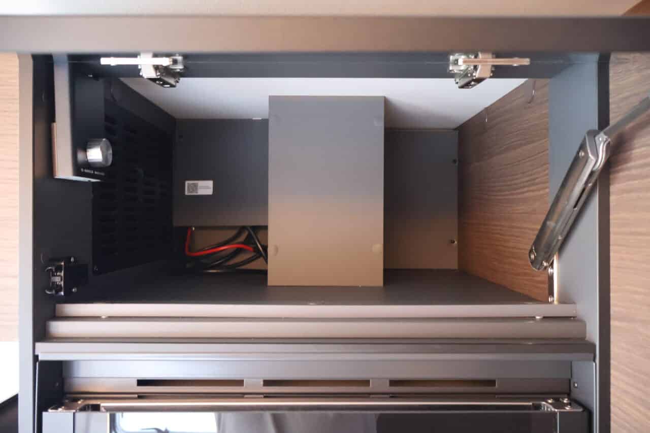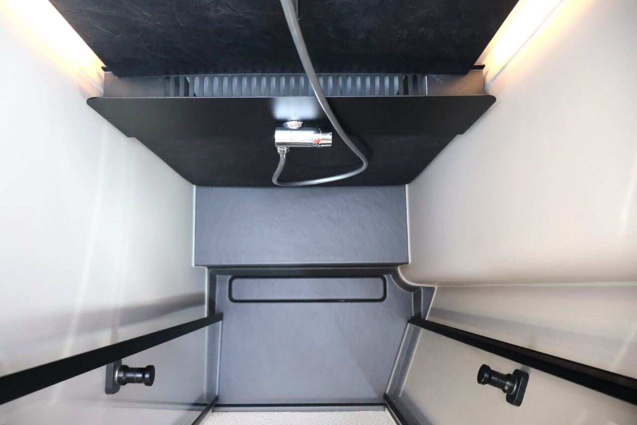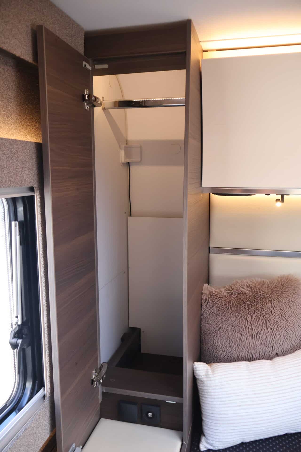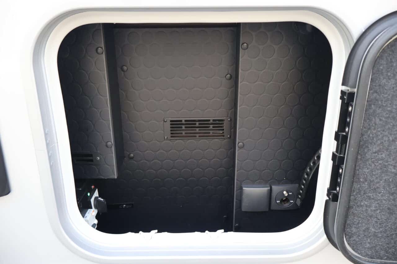 : OPBERGLUIK BUITENZIJDE CAMPER, VOORZIEN VAN LED VERLICHTING, 230V & 12V STOPCONTACT