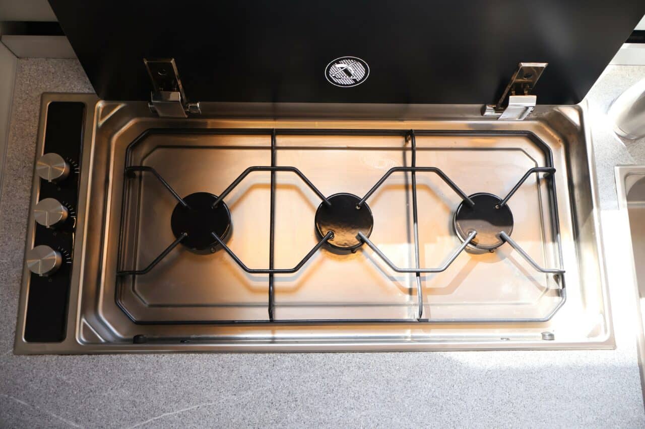 : GASKOMFOOR, RVS, 3-PITS MET ELEKTRISCHE ONTSTEKING EN GLAZEN AFDEKKING