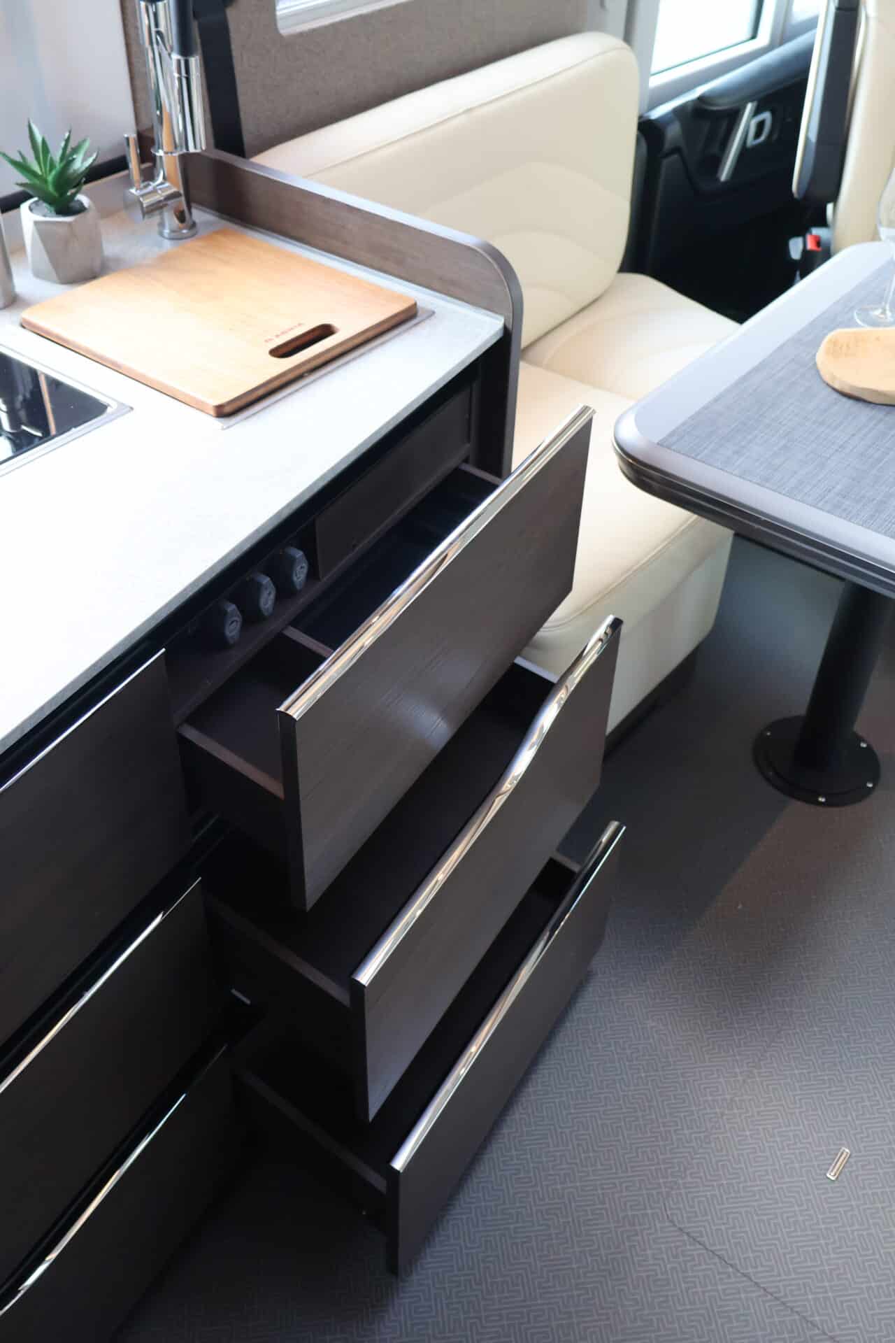 : KEUKENLADEN VOORZIEN VAN ELEKTRONISCH CENTRAAL SLUITSYSTEEM MET WEGRIJBEVEILIGING