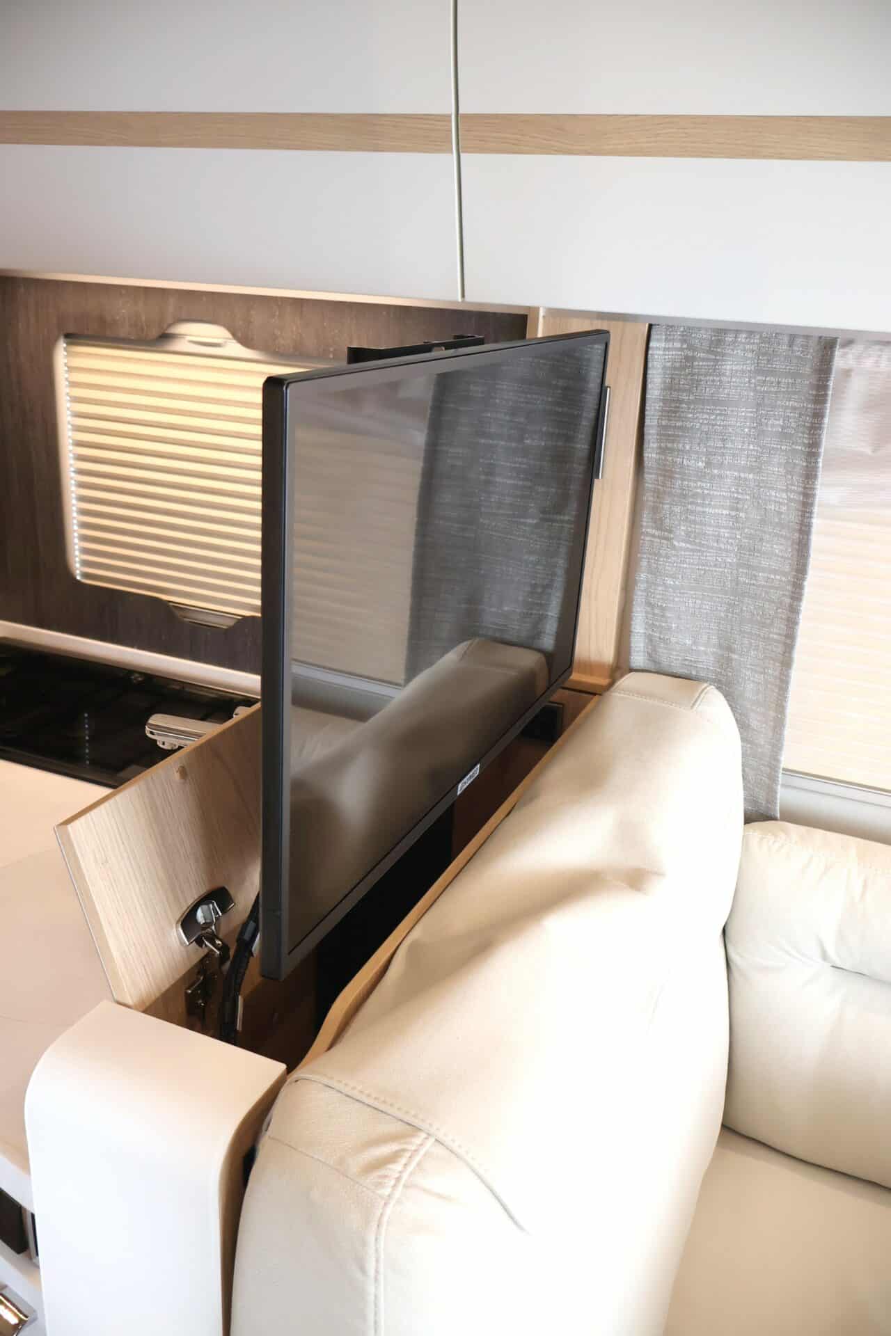 : TV, 32 INCH, ALPHATRONICS, V.V. ELEKTRISCHE TV BEUGEL IN ACHTERWAND VAN ZITBANK