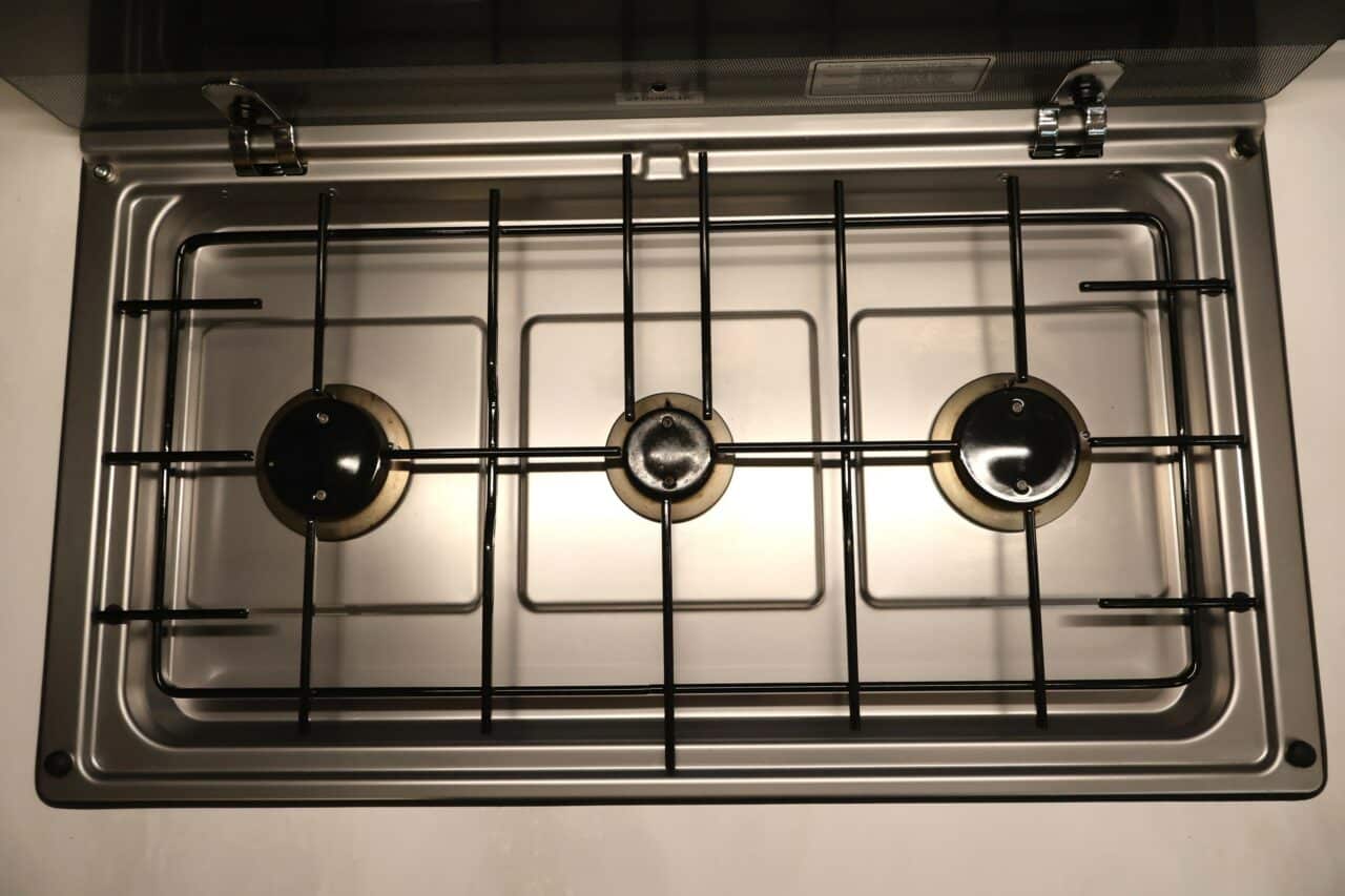 : GASKOMFOOR, RVS, 3-PITS MET ELEKTRISCHE ONTSTEKING EN GLAZEN AFDEKKING