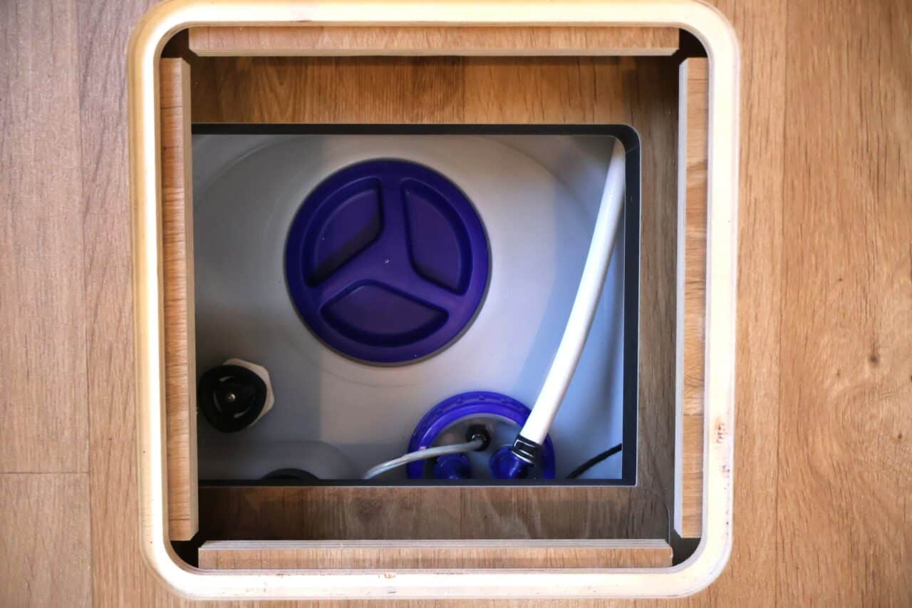 : WATERTANK, VUIL, 150 LITER, IN GEÏSOLEERDE EN VERWARMDE DUBBELE BODEM