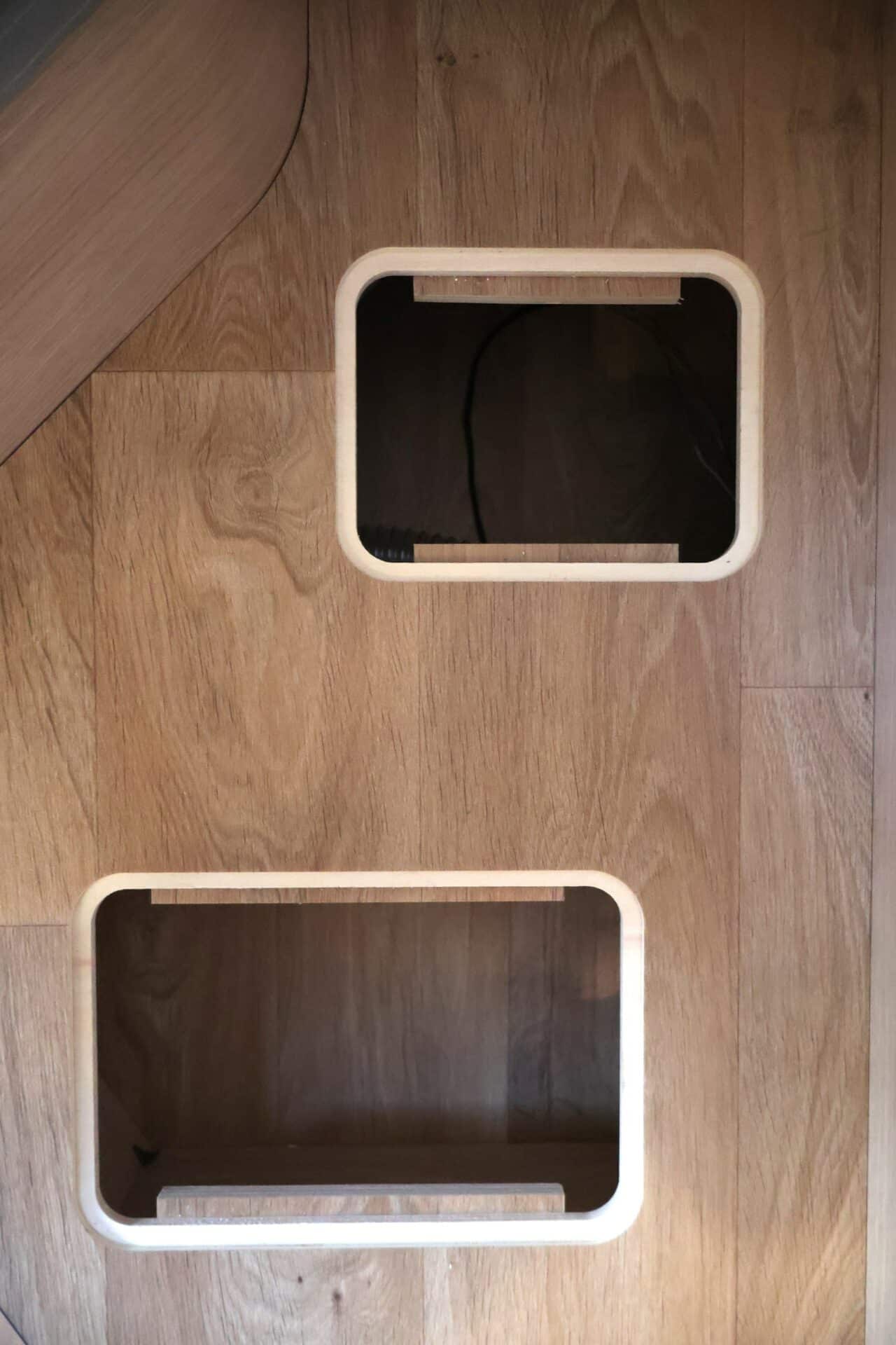 : GELUIDSBOXEN EXTRA IN DE CAMPER (2X IN HET HEFBED + 2X IN DE HANGKASTEN)
